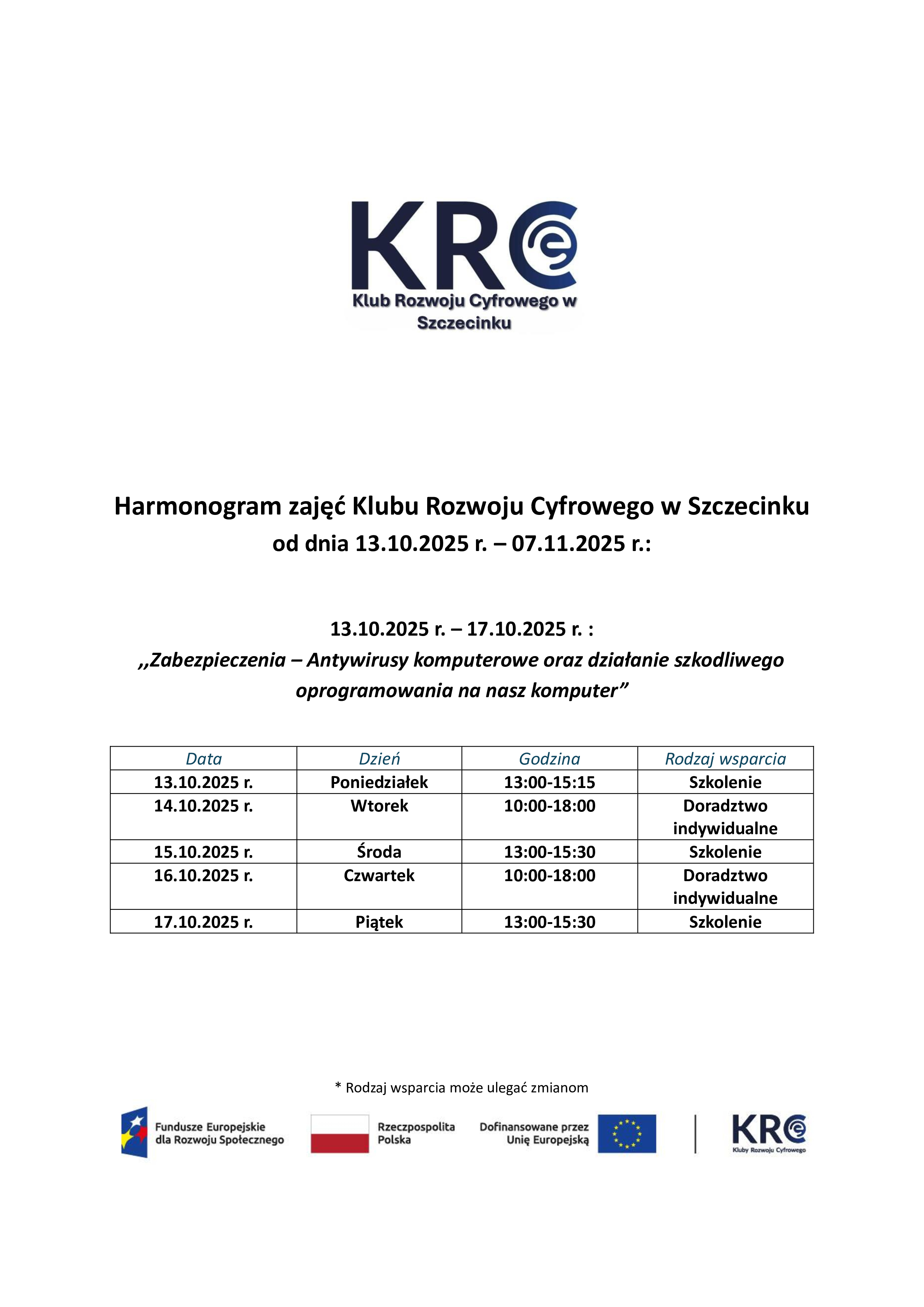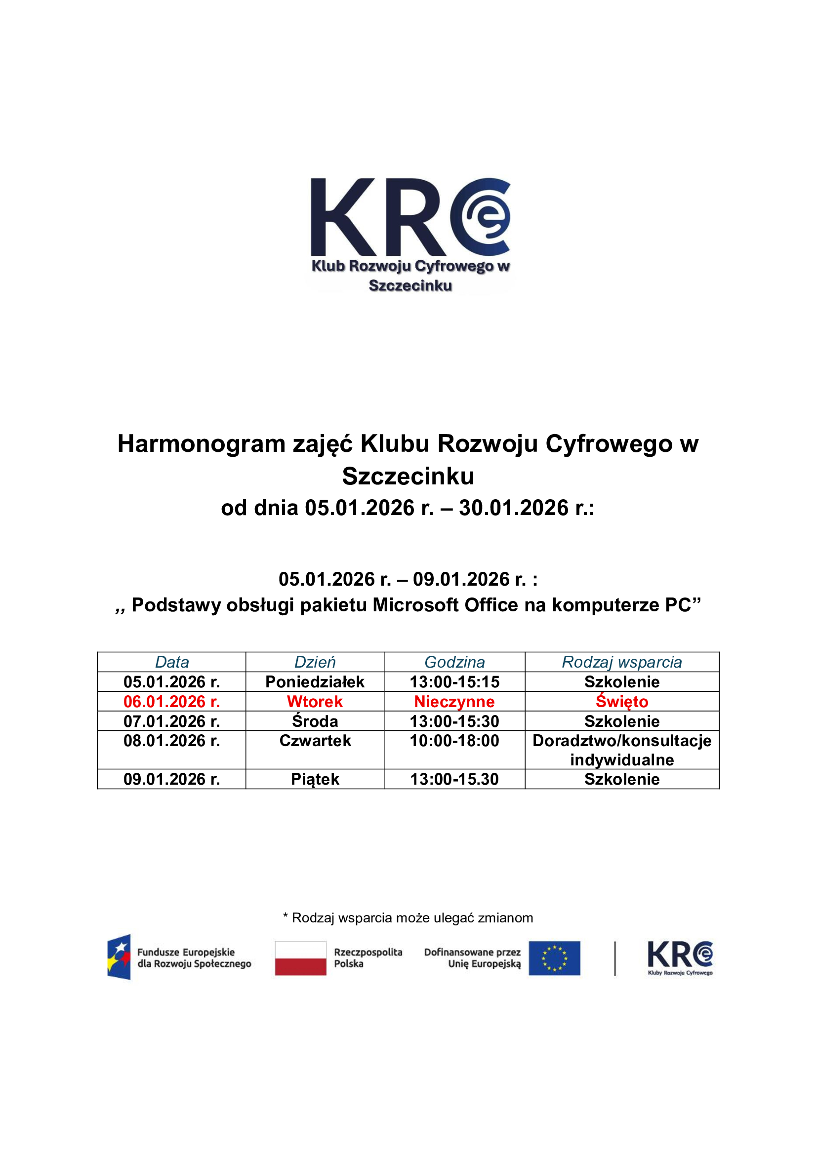 Harmonogram wsparcia