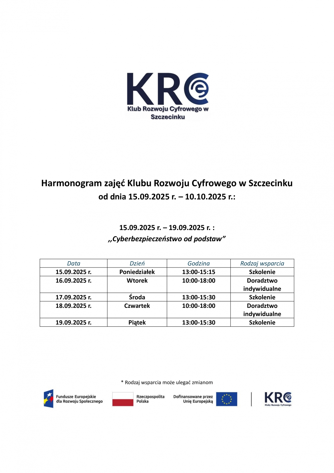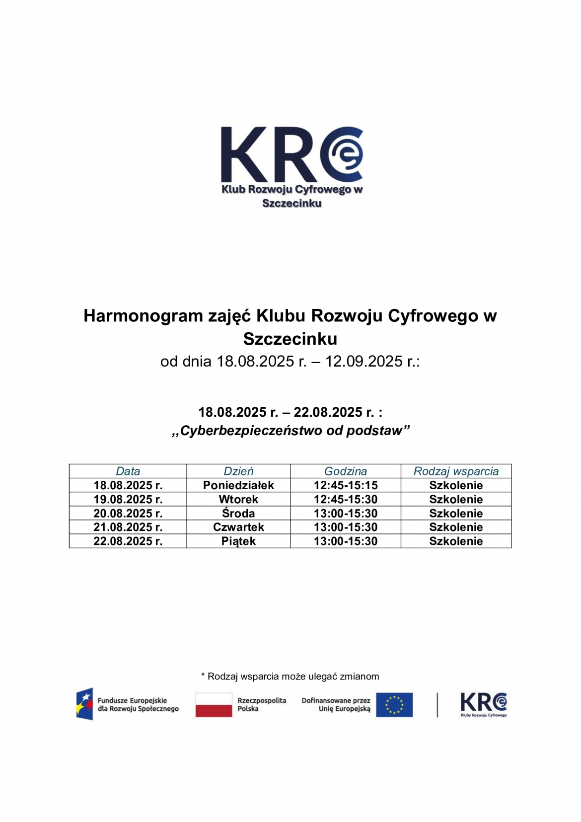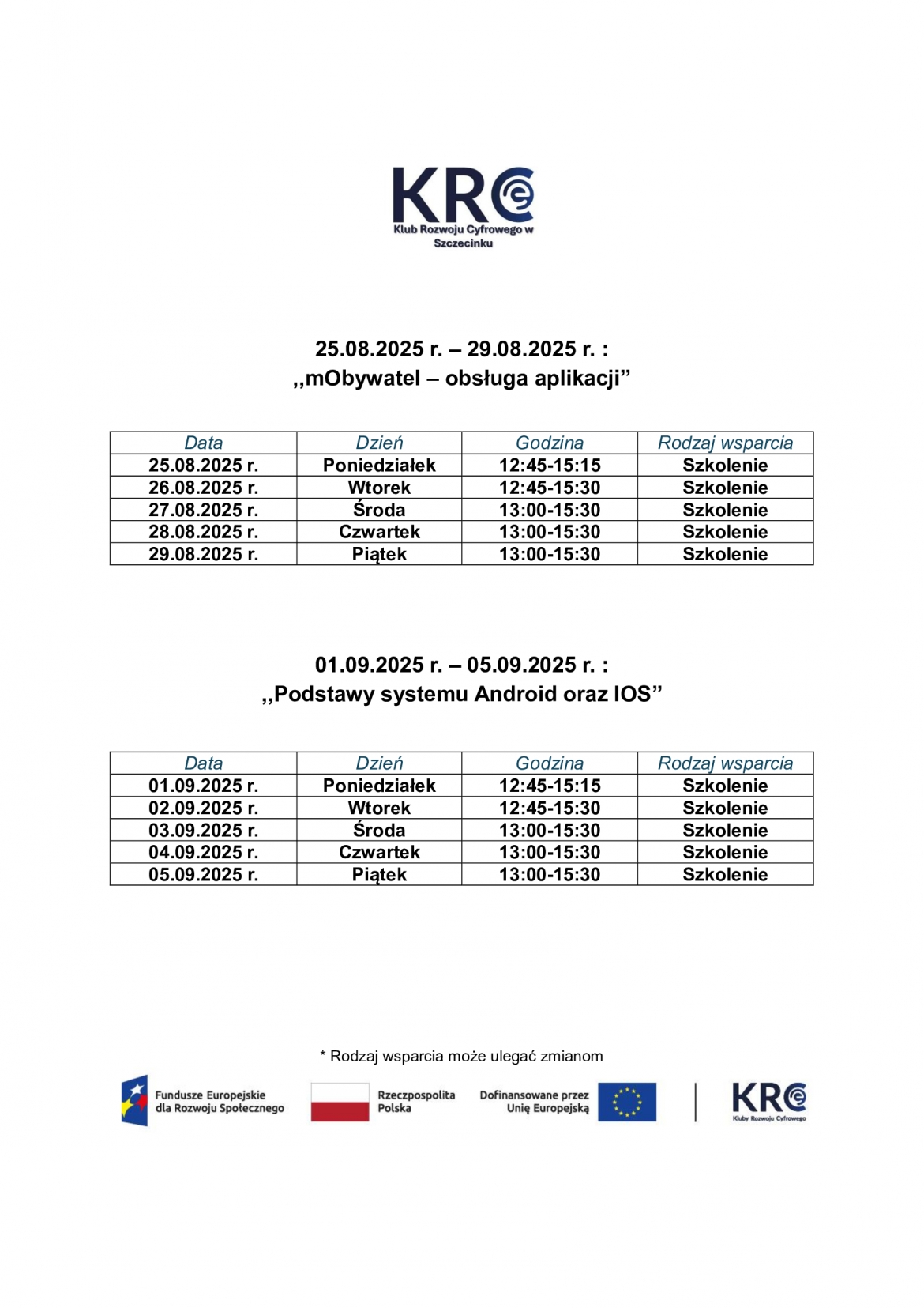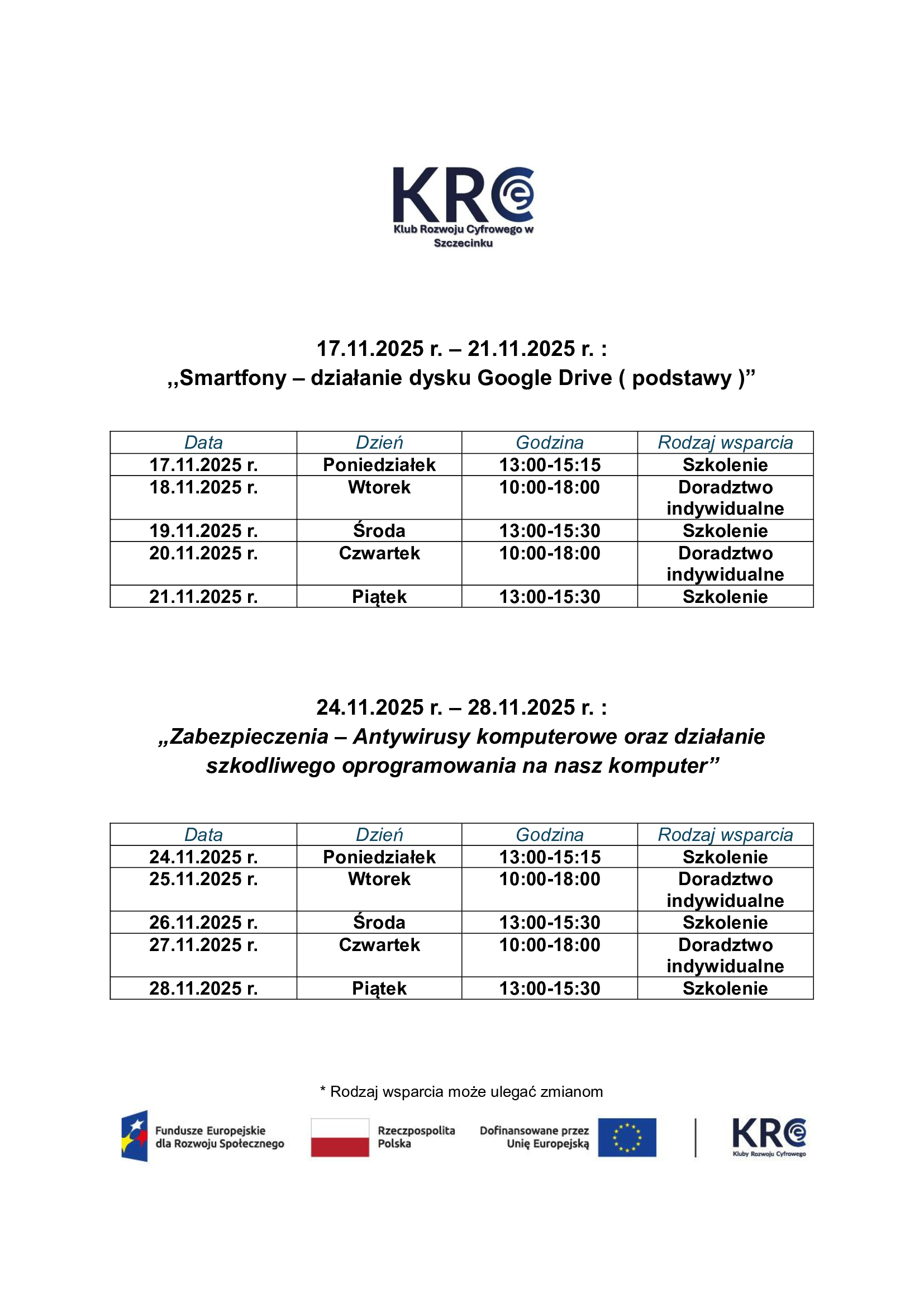 Harmonogram wsparcia